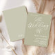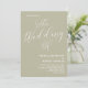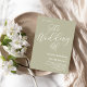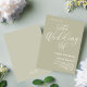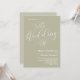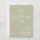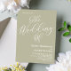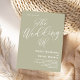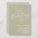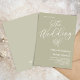 Um simples convite para o casamento com um simples, elegante roteiro de caligrafia, com tendências, cores verdes de sábio, e o casamento da tipografia de scripts, um mínimo, simples, e monograma, estilo moderno no fundo.