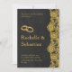 Personalizar este Simples Casamento Dourado Floral Preto | Convite para Casamento de Flores Douradas Modernas Elegantes