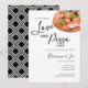 Convide os convidados para o jantar de ensaio, chá de casal ou casamento com esses convites modernos de "amor e pizza".