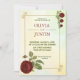 Convite Simples para Casamento de Flor de Água Vermelha Burgundy. inclui rosas de burlões, rosas vermelhas e folhas verdes - Flores vermelhas borgonhentas nas costas. Selecione Personalizar para alterar as Informações para adequar-se ao seu evento antes da compra.