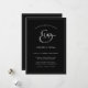 Simples Convite para Casamento de Monograma Branco e Preto. Estique seus convidados de casamento com este convite de casamento preto, com uma bela escrita branca, com a noiva e as iniciais do noivo num fundo estético escuro. Este Convite tem um design preto e branco espantoso, com vibrações dramáticas e melancólicas, perfeitas para o vosso simples, tendencioso, gótico ou casamento no inverno. O layout mínimo e moderno chama a atenção para o roteiro inicial, em contraste com o fundo negro. Este convite vai dar o tom de um belo cenário de casamento rodeado de florais neutros ou negros e brancos, e de decor de casamento estético escuro correspondente. Uma adição perfeita a qualquer celebração subestimada, dramática ou gótica. O Coletivo de Domingo © por Rachel Hannah Gee