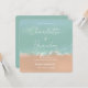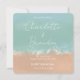 Simples convite para o casamento na praia de verão. Espadilha moderna e areia com uma dica de desenho de arte azul