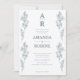 Convide seus convidados com elegância de eterno usando este simples convite de casamento floral azul. Com arte vertical em linha botânica em ambos os lados e tipografia serif minimalista, este modelo equilibra o refinamento moderno com a beleza clássica. Perfeito para casamentos de qualquer época