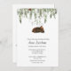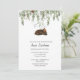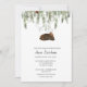 Aquarelas naturais em verde pinheiro trazem uma nova abordagem para convites de chá de bebê florais. Use-o para decoração de festa com tema de vegetação e floresta.