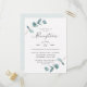 Convites de Recepção de Casamento com Rótulo de Eucalipto Minimalista Simples. Perfeito para o seu tema de casamento de jardim ou ar livre na primavera ou verão. Em uma paleta de cores suaves e sutis de tons de verde água, menta pastel, cinzas azulados empoeirados e branco clássico simples. A fonte de caligrafia elegante é destaque para a palavra Recepção. Este design é perfeito para um casamento rústico, campestre ou de jardim. Convites Simples de Eucalipto são fáceis de personalizar com este modelo para papelaria de casamento DIY e acessível.