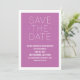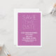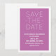 Anúncio Simples de Salvar a Data em fuchsia radiante e branco com um design de tipografia moderna. Este convite de salvar a data moderno e elegante é fácil de personalizar com os detalhes do seu casamento. Para mais opções de personalização, clique no botão Personalize.