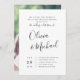 Design de tipografia de script moderno em preto e branco, com foto de casal opcional no verso, simples e elegante. Excelente para casamento moderno. Ver todas as peças correspondentes na coleção
