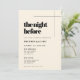 Na noite anterior... Certifique-se de que tudo é perfeito para o grande dia; faça alguns convites modernos para o seu janto de ensaio de casamento. Minimalista, porém impressionante: adote esta design tipográfica ligeiramente retrorreflectora para a sua papelaria de casamento, com uma elegante cor creme. Texto, cores e fundo totalmente personalizáveis.
