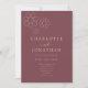 Linda e minimalista padrão retrógeométrico da margarida com o elegante roteiro de tipografia burgundy e convite para casamento de rosas claro. Visitas simples na arte retrógrada dos anos 70 da rosa claro em um fundo burguês. Trabalho de arte original minimalista da artista Catherine Sweetman