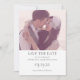 Esta simples e moderna "Salve a data" tem uma seção de fotos de destaque e define o tom para o evento do ano! Deixe a sua foto falar por si mesma, e retransmita os detalhes de sua data de casamento de uma forma moderna e elegante com esta carta. Todas as seções da placa são editáveis, incluindo a foto. Sinta-se livre para editar em seus próprios detalhes clicando no botão personalizá-lo à direita da imagem.