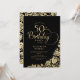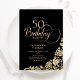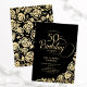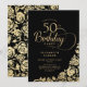 Simples elegante 50º convite de aniversário em preto e ouro. Design clássico com rosas, folha de ouro falsa e letra de script de tipografia. A Trendy convida o cartão perfeito para uma festa de na moda. Personalize com seus próprios detalhes. Pode ser personalizado para qualquer idade. Impressos convites Zazzle ou modelo de impressão digital instantânea para download.