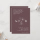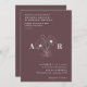 Comemore o amor com este elegante convite para o casamento de flor de papoila com um layout de monograma limpo e uma ilustração floral branca graciosa em um fundo de mauve quente. As delicadas papagaias botânicas aliadas a fontes clássicas de serifa evocam um eterno, ainda que romântico, perfeito para casamentos íntimos, jardins ou rústicos. Personalize os nomes, a data, a hora e os detalhes do local para se adequar ao seu grande dia. Este design de convite combina minimalismo refinado com encanto artístico, criando uma declaração moderna, mas sincera, para a celebração do seu casamento.