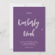 A tenda elegante escreveu para a noiva e o guião noivo nomes de casamento informais em branco e roxo simples. ++++++++++++++++++++++ Você pode alterar as cores do texto e do plano de fundo após selecionar a opção PERSONALIZAR mais. ++++++++ O convite é adequado para cerimônias e recepções de casamento informais de estilo moderno.