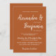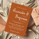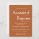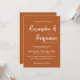 Imagem elegante do roteiro de tipografia na moda no convite casual de casamento em simples terracota e letras brancas com nomes de noiva e noivo, caligrafia. ++++++++++++++++++++++ Você pode alterar as cores do texto e do plano de fundo após selecionar a opção EDITAR USANDO a FERRAMENTA DESIGN em PERSONALIZAR ESTE menu MODELO. +++++++++ O convite é adequado para a cerimônia e recepção do casamento outono de outono.
