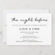 A noite antes... Certifique-se de que tudo está perfeito para o grande dia; obtenha alguns convites modernos para o jantar de ensaio do seu casamento. Uma tipografia muito simples e elegante que vai se adequar ao seu casamento chique! Cores totalmente personalizáveis.