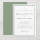 Convite de casamento elegante e moderno apresenta um design contemporâneo simples e minimalista com uma borda de moldura dupla em cor verde-claro sobre um fundo branco crocante. A redação tradicional fornece sofisticação atemporal e moderna. Personalize o design do casamento com seus detalhes em letras e caligrafia verde-chic. O verso do cartão combina com o verde sólido.