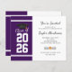 Adicione seu ano de graduação, nome e detalhes do local com data para este moderno fundo vermelho e branco negrito com convite de festa de formatura de tipografia negra usando nosso botão "Personalizar" acima