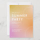Um convite de festas de Verão moderno, com um gradiente cor-de-rosa, amarelo e laranja como fundo. Use este convite para convidar seus amigos e família para sua próxima festa de verão em sua casa. Use-o para festas de cocktail, horas felizes, churrascos, camisas de casa e muito mais.