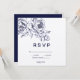Arte linear de peônia com tema de cor marinho perfeita para o seu casamento ou noivado