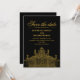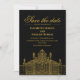 Simples Preto e Dourado Moderno Salve a Data Convite com Ouro vintage grande portão em fundo preto simples com tipografia simples e elegante do Ouro. É um belo e único cartão de casamento real. Personalize todo o texto deste cartão. Você pode personalizá-lo pressionando o botão (Personalizar). Se quiser personalizá-lo mais, vá para a opção (Clique para personalizar mais). Dimensão: 5" x 7" Personalizável: Sim, Crie o seu próprio. — A PERFECÇÃO —