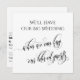 Este design apresenta o texto "Teremos Nosso Grande Casamento", seguido de "quando pudermos abraçar nossos amados convidados" em uma bela e giratória letra de roteiro. Use os campos modelo para adicionar seus detalhes pessoais e alterar qualquer um dos meus rascunhos para adequá-los às suas necessidades e situação. Se ainda não tiver definido uma data, poderá clicar para personalizar e remover as linhas desnecessárias. Sinta-se livre para mudar o plano de fundo para qualquer cor que você preferir. Se você tivesse minha ajuda para personalizar, por favor, não hesite em se aproximar. 119 //
