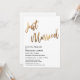 Convide seus convidados para a celebração do seu casamento com a ajuda destes simples cartões de convite. Para o cabeçalho, usei uma fonte manuscrita casual e moderna para criar uma sobreposição de tipografia gráfica que diz "Recém-Casados". Esta imagem foi adornada com um efeito de folha de ouro falso liso para um resultado festivo. Preencha os espaços em branco do modelo com seus detalhes para personalizar o design. Todas as camadas foram deixadas desbloqueadas para que você também possa clicar para personalizar ainda mais e reposicionar o texto ou até mesmo alterar tamanhos ou fontes. A cor do fundo foi deixada branca, mas isso também é editável; mude para uma das cores do seu casamento, se preferir. Alternativamente, você pode optar por adicionar uma imagem ao verso. Por favor, não hesite em entrar em contato para obter ajuda com a personalização.