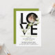 Este convite moderno para festa de Dia dos Namorados apresenta uma letra cursiva preta e ousada soletrando "Amor", lindamente decorada com uma delicada guirlanda de flores brancas e folhas verdes. Dentro de uma das letras, há uma foto do casal, adicionando um toque pessoal ao design. A parte de trás do convite é uma cor verde brilhante e vibrante, aumentando seu apelo festivo. Este convite elegante pode ser personalizado para outras ocasiões também, como aniversário de casamento, aniversário, Páscoa ou qualquer celebração especial. Com seus acentos florais românticos e recursos personalizáveis, é a maneira perfeita de convidar os convidados para um evento memorável cheio de amor e alegria!