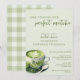 Simples Minimalista Encontrou Seu Convite de Chá de Noiva com Matcha Perfeito - Celebre a noiva com um chá de noiva temático de chá matcha. Perfeito para a noiva que ama matcha, gosta de chá e de tudo relacionado à saúde e bem-estar. Este convite minimalista apresenta uma ilustração em aquarela de uma rica xícara de chá matcha espumoso com leite cremoso em um pires sobre um fundo verde menta sálvia. A fonte manuscrita reúne uma estética divertida e casual, mas elegante. Perfeito para festas de chá de noiva na primavera, verão e até outono ou saraus de noiva aconchegantes. Disponível como download digital, personalize este modelo de convite de chá de noiva editável com seus próprios detalhes.
