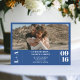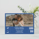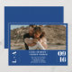 Iniciais modernas e simples minimalistas 1 casamento fotográfico. Adicione a sua foto de casal, iniciais ou monograma com um simples script em negrito, simples azul-chic e branco.