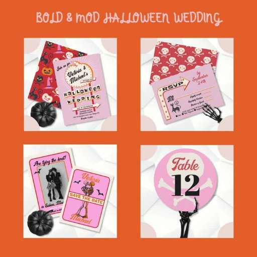 Sinal em forma de Casamento de Halloween e fontes divertidas com uma vibração retrógrada. Apresenta um sinal de abóbora com cores cor rosada, vermelha, laranja, preta e muito clara e cremosa branca. Perfeito para um casamento no Halloween! Todos os textos podem ser alterados, exceto a palavra "HALLOWEEN WEDDING". Para fazer mais mudanças, vá para Personalizar este modelo. Na parte inferior você verá "Quer personalizar este design ainda mais? Clique em EDIT usando a ferramenta Design. Será necessário algum aprendizado, mas você pode mudar algumas das fontes e algumas cores, mover as coisas ou excluir o que você precisa. Você vai pegar o jeito disso.