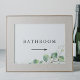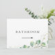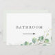 Este elegante sinal de casa de banho de flecha direita do casamento é perfeito para um evento simples. O moderno elegante design apresenta uma disposição botânica natural de eucalipto, folhas e plantas com um sutil sotaque de hortelã verde-aquarela.