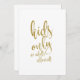 Um sinal de casamento elegante e moderno, apresenta o texto "Somente crianças, adultos não são permitidos!" em uma fonte de letra extrovertida, a textura brilhante adiciona um toque festivo e glamoroso. A cor do fundo pode ser personalizada de acordo com suas necessidades e preferências, por favor entre em contato comigo se tiver alguma solicitação especial.