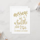 Um sinal de casamento elegante e moderno, apresenta o texto "Mensagem numa garrafa, por favor deixe um bilhete" em uma fonte de letra extrovertida, a textura brilhante adiciona um toque festivo e glamoroso. A cor do fundo pode ser personalizada de acordo com as suas necessidades e preferências, por favor entre em contato se tiver algum pedido especial.