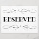 Sentado "reservado" / mesa de casamento ou sinal de evento especial. Apresenta o deco de arte de vintage que inspirou o design com rolagem a preto.