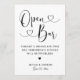 Defina o tom para uma celebração memorável com este letreiro de "Bar Aberto" com escrita de coração moderno. O texto apresentado lúdico diz que as bebidas de hoje à noite são gratuitas e as histórias de amanhã serão inestimáveis, tudo estilizado em caligrafia romântica com floreios de coração assinados. Personalize com seus nomes e data de casamento para um toque personalizado no bar. Todo o texto é totalmente editável.