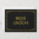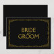 Sinal de casamento em estilo art déco simples e elegante "Noiva e Noivo", personalizado com o seu próprio texto, apresenta uma moldura art déco dourada sobre um fundo preto.