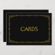 Sinal de casamento em estilo art déco simples e elegante "Cartas", personalizado com o seu próprio texto, apresenta uma moldura art déco dourada sobre um fundo preto.