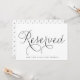 Um lindo sinal de Reservado com caligrafia preta delicada e padrão de bolinhas. Este cartão plano será perfeito para casamentos e eventos semelhantes. Disponível em outras cores.