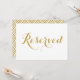 Cartão plano de casamento reservado divertido e caprichoso com caligrafia moderna em dourado. Itens semelhantes estão disponíveis.