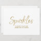 Um sinal de envio à mão com a letra de na moda "Sparkles" NOTA ____________________________________________________________________________________________________ O ouro não é folha de alumínio real, é um efeito digital. Este é um sinal de 6,5" x 8,75", clicando no botão "personalizá-lo" que você pode acessar às ferramentas de design para alterar o tamanho e a forma, e também pode adicionar uma cor de fundo. Para combinar este sinal com o seu estilo de casamento, pode escolher entre 12 opções de papel únicas. Para uma sensação rústica, use a kraft artística, para adicionar um pouco de vidro, use o shimmer de pérolas. _____________________________________________________________________