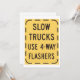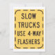 Uma placa de estrada de caminhões lentos que diz que usa lanternas de 4 vias. Esta design parece realmente eficaz neste Convite
