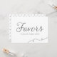 Um adorável sinal de favor de casamento com script de caligrafia delicada preta e padrão de bolinhas. Este cartão plano será perfeito para casamentos e eventos semelhantes. Disponível em outras cores.