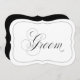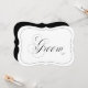 Sinal de casamento clássico e discreto em preto e branco com um toque moderno, apresentando a escrita elegante da palavra "Noivo" e uma borda preta. Ótimo para a cadeira do noivo ou outras disposições especiais, como sinal na porta da sala de preparação ou no carro.