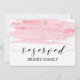 Este sinal de "reservado" para casamento em tons de rosa e dourado em aquarela é perfeito para um casamento com tema moderno, romântico e doce. O design é duplo (imprime dos dois lados). O design feminino e luxuoso apresenta uma textura de aquarela rosa claro com um toque de pó de brilho dourado falso e uma fonte de letra de caligrafia elegante. Use esses cartões para reservar cadeiras ou mesas na cerimônia ou recepção do seu casamento.
