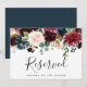 Indique assentos reservados em seu casamento com este sinal floral elegante em tons de joia. Personalize com duas linhas de texto personalizado em caligrafia e letras maiúsculas modernas (mostrado com "Reservado" e o nome do convidado com assento reservado), emoldurado por flores de aquarela exuberantes e folhagem verde em tons ricos de outono/