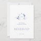 Adicione um toque refinado ao seu casamento ou evento especial com esta elegante placa "Reservado", com delicados florais azuis empoeirados e tipografia de eterno. Ideal para cerimônias, recepções ou qualquer arranjo de assentos em que certas manchas são salvas para convidados especiais. Impresso em estoque de cartão premium, esse cartaz emparelha lindamente com temas clássicos e românticos. Mostra-o em turfeiras, cadeiras ou mesas para funções e estilos.
