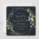 Este sip geométrico da caligrafia verde-azul-dourada e ver o convite é perfeito para um simples encontro com a festa do bebê. A design apresenta lindas folhas verdes pintadas manualmente em um fundo azul escuro, enfeitando uma armação geométrica dourada.