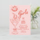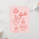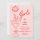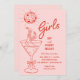 Reúna suas garotas para uma festa de cerveja e tinta! Este design é moderno, moderno, ousado e apresenta cor-de-rosa e vermelho vibrantes. Apresentando um tema de vaquinha com um vidro martini e bola de disco.