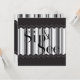 Listras pretas, cinzas e brancas com sotaques pretos, neste moderno convite para o bebê