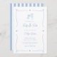 Celebre sua chegada mais recente com este adorável convite de chá de fraldas azul e branco para um menino. Apresentando ilustrações lúcidas de garrafas e coquetéis, sotaques cardíacos brancos, e um doce striped back, este charmoso design é perfeito para acolher amigos e família para conhecer seu pequeno. Personalize com todos os detalhes do evento, incluindo o nome, data, hora e informações de RSVP do bebê. Ideal para uma reunião casual e elegante de nascimento poste, este convite adiciona uma reviravolta moderna à celebração do seu bebê.